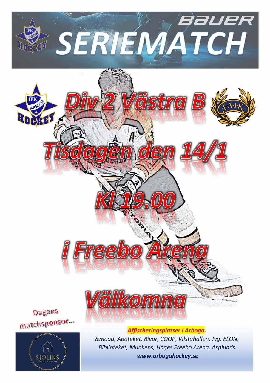 Tisdag 14/1 kl 19.00 spelar vi mot Fagersta AIKVälkomna!